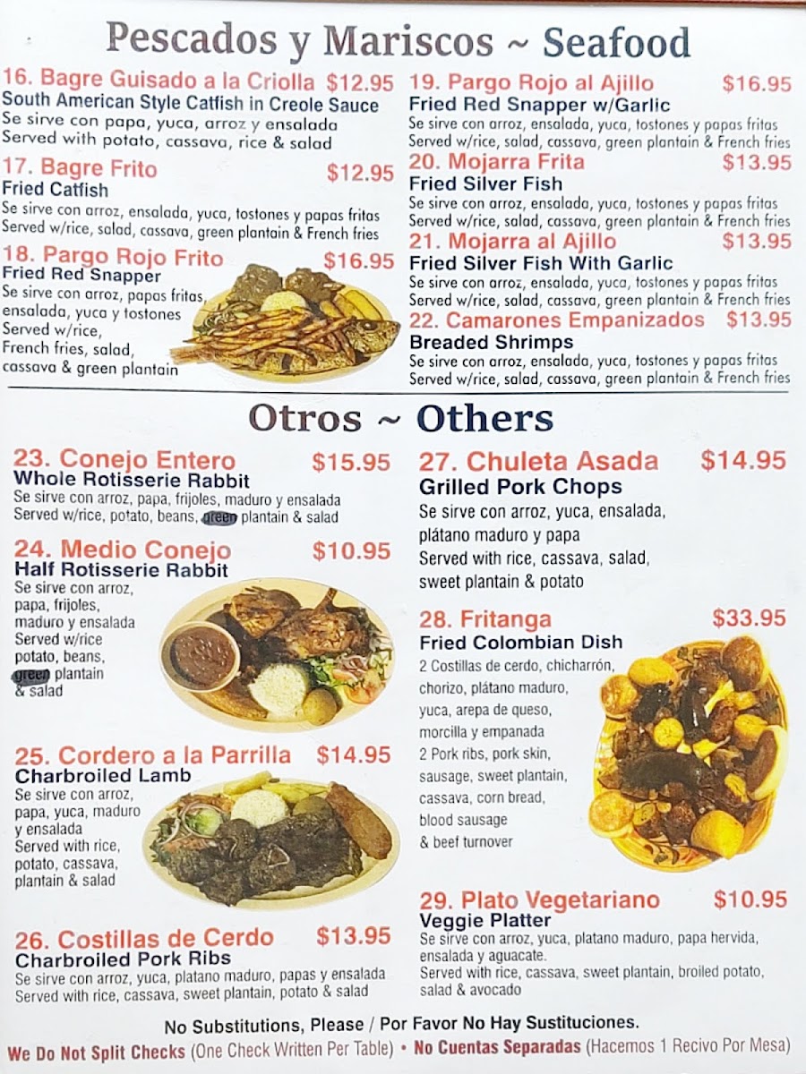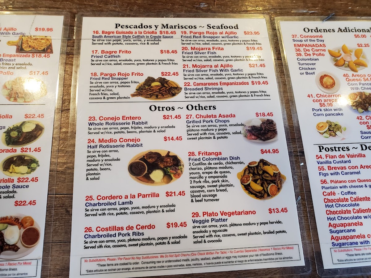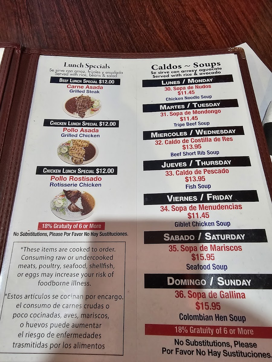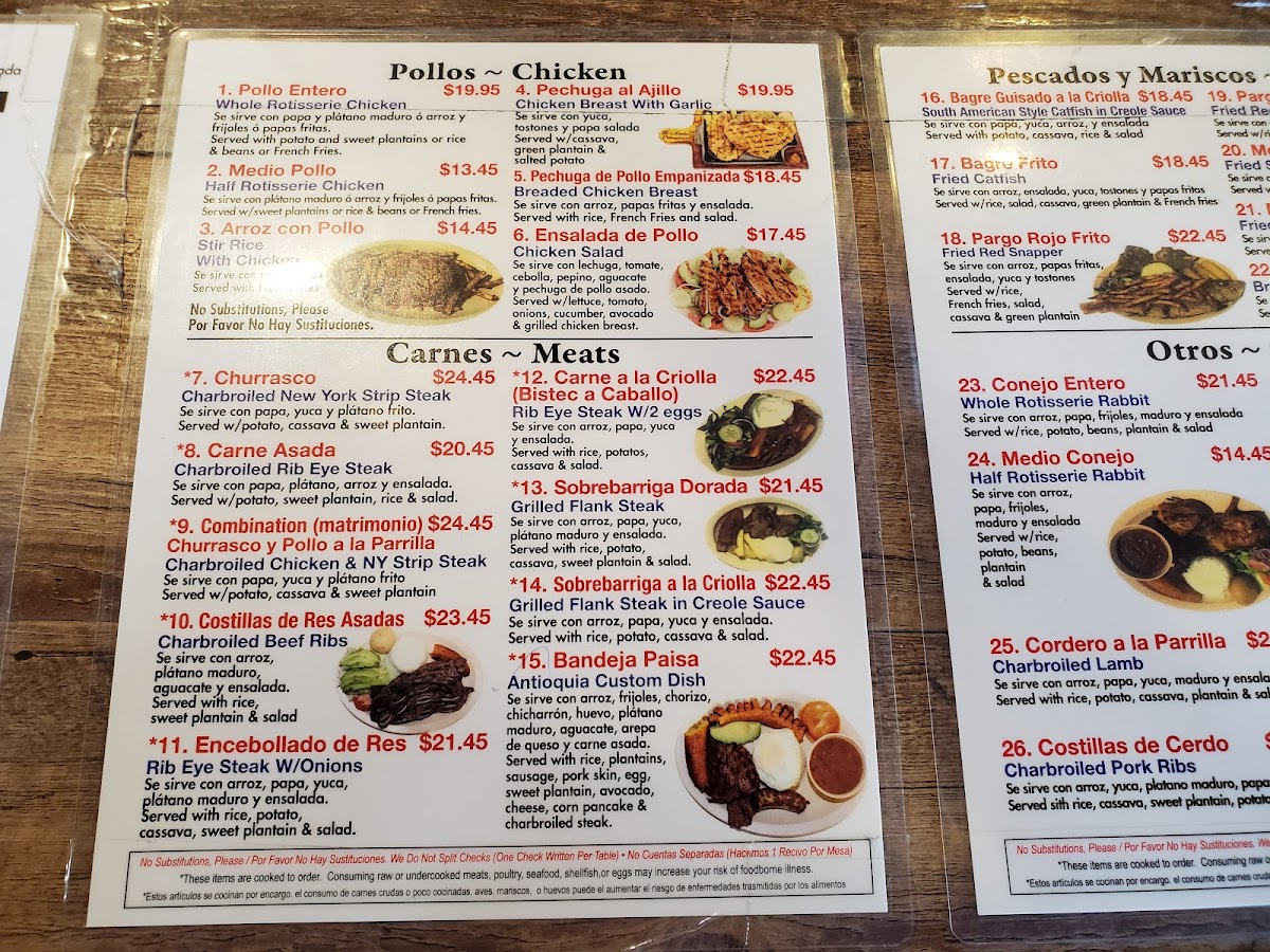 El Asadero Colombiano Menu